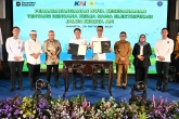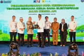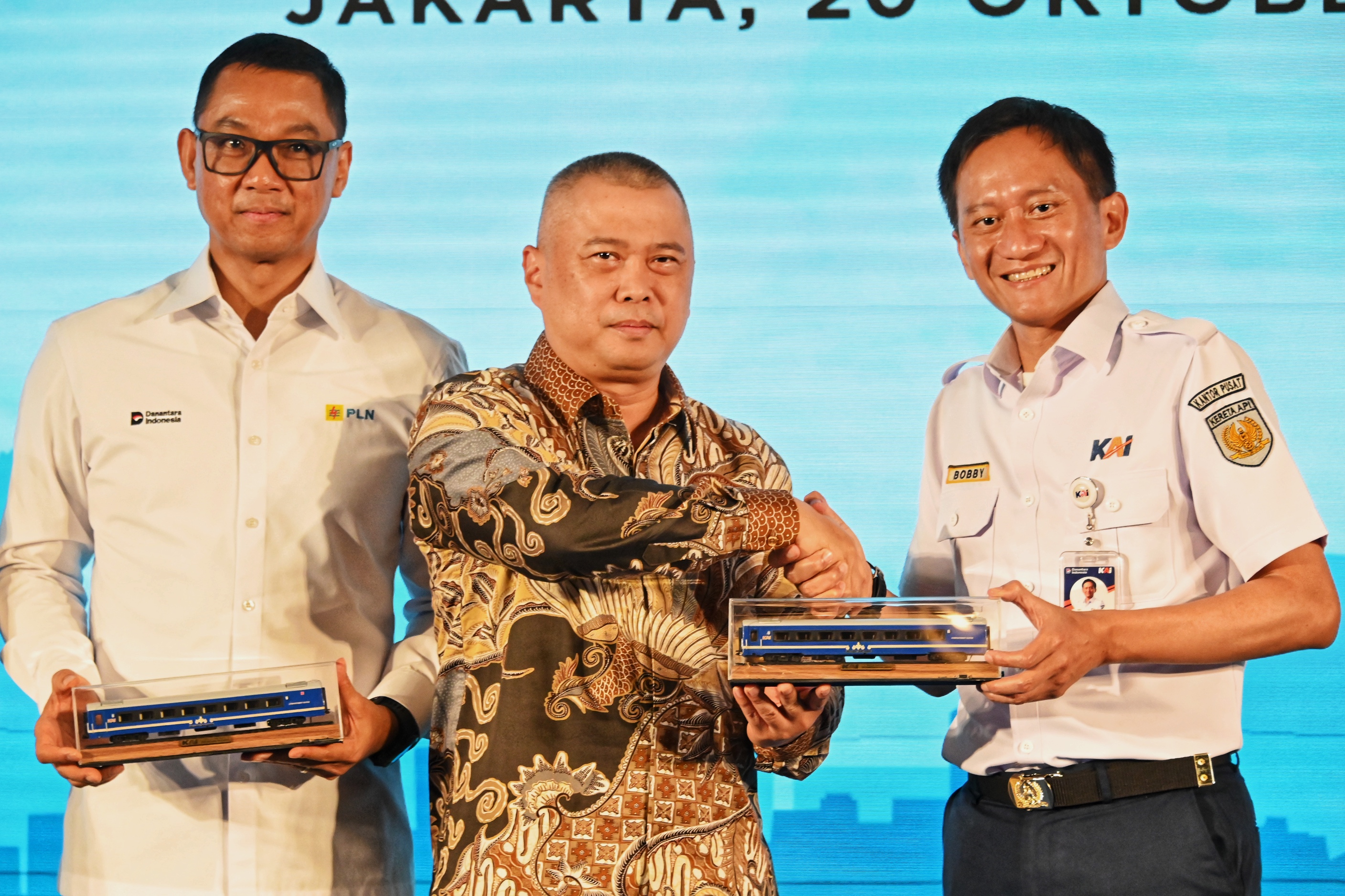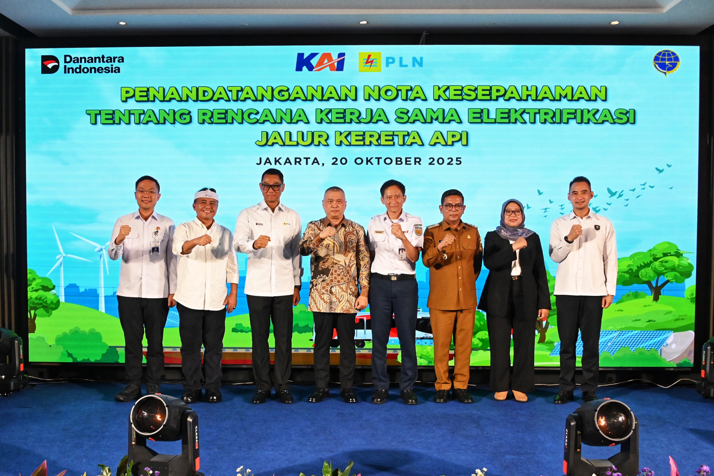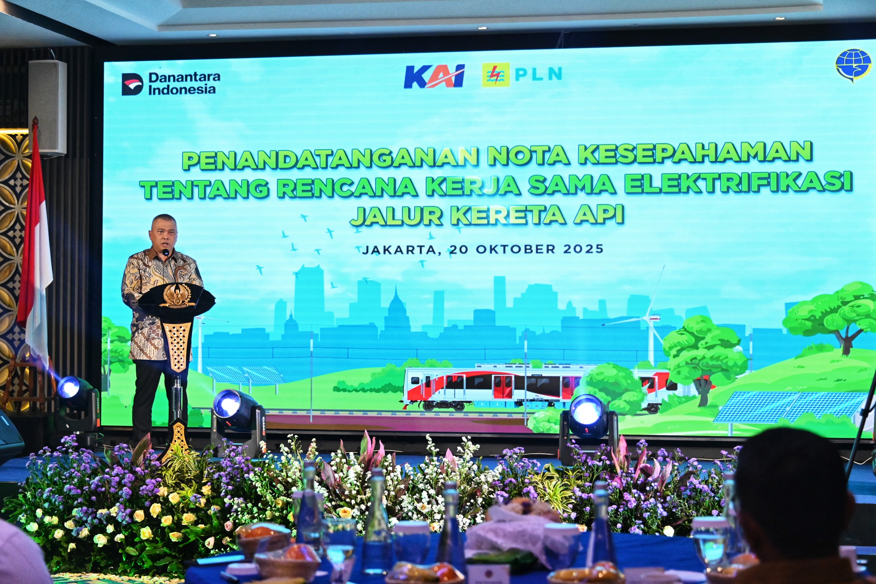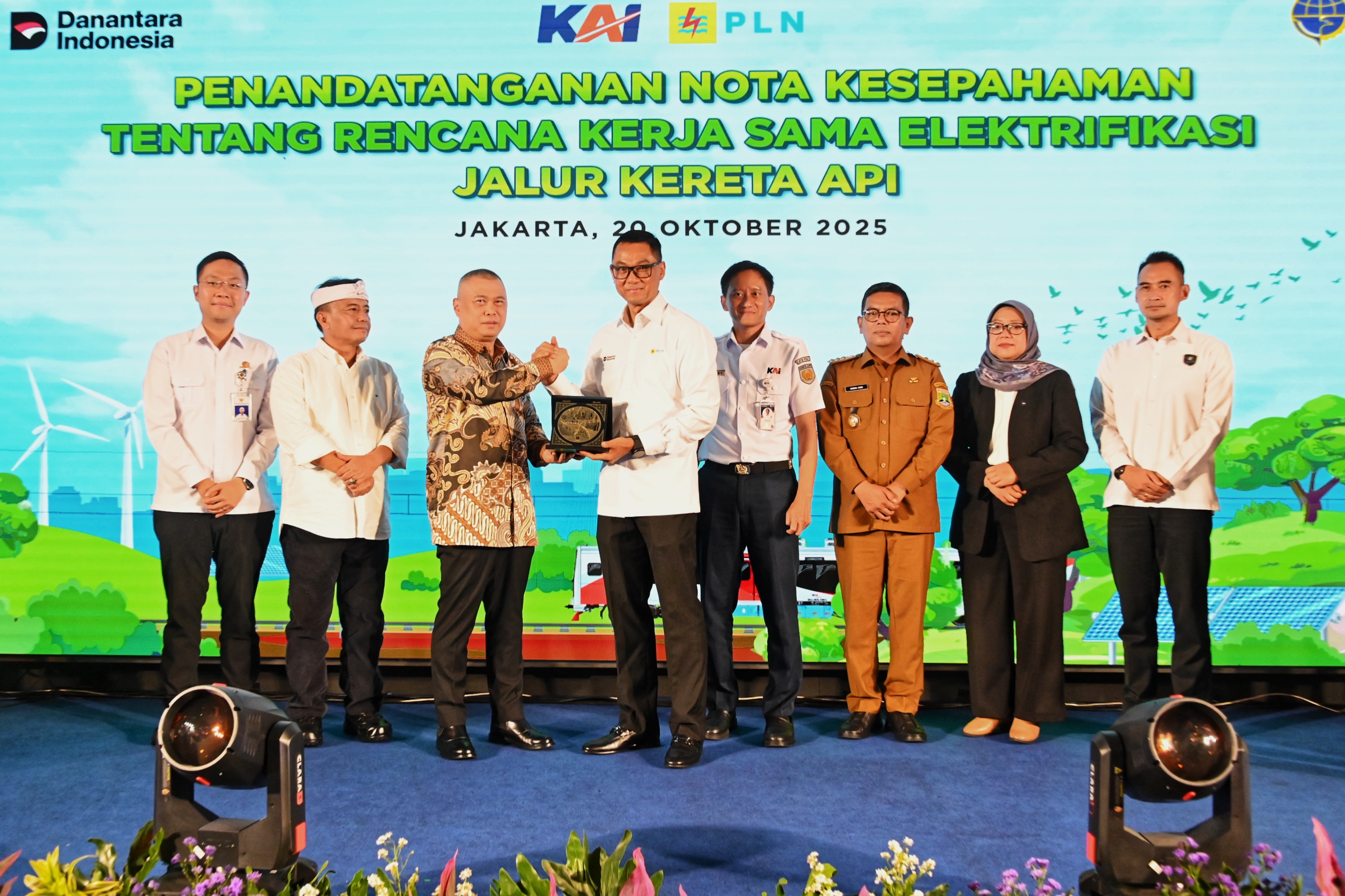 Menteri Perhubungan Dudy Purwagandhi menghadiri Penandatanganan Nota Kesepahaman Rencana Kerjasama Elektrifikasi Jalur KA antara PT KAI dan PT PLN di Auditorium Ir H Juanda Railway Center Gambir, Jakarta, Senin (20/10/2025)