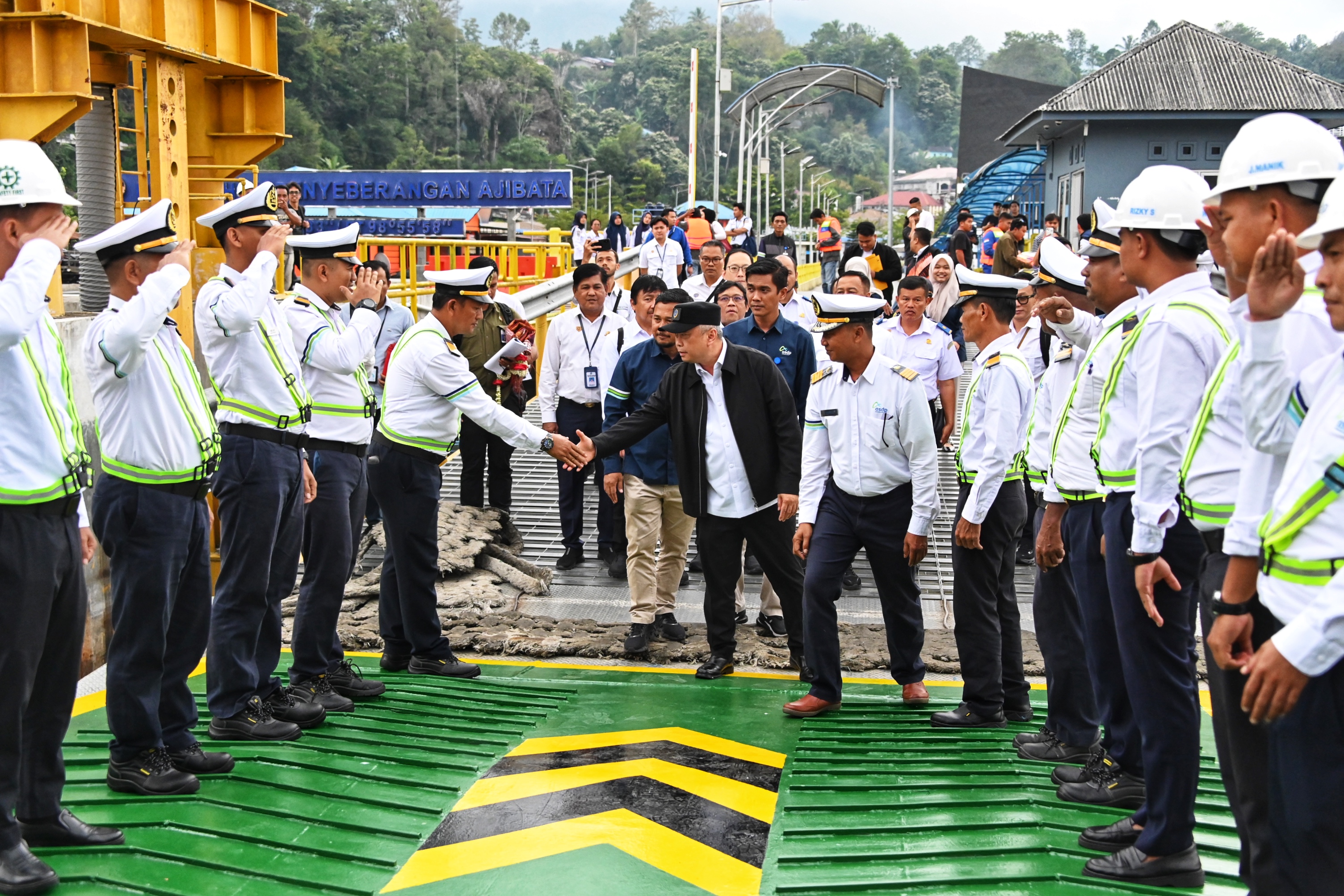 Menteri Perhubungan Dudy Purwagandhi melaksanakan peninjauan persiapan sarana dan prasarana transportasi laut menghadapi Angkutan Natal 2025 dan Tahun Baru 2026 di Pelabuhan Ajibata, Sumatra Utara, Rabu (10/12/2025)