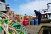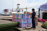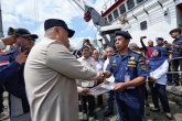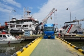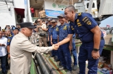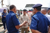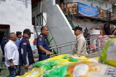 Menhub Dudy Purwagandhi meninjau kapal KN Berhala dari Disnav Kelas 1 Belawan yang dijadikan sebagai armada pengangkut bantuan kepada masyarakat Sumatera Utara dan sekitarnya (02/12/2025)