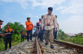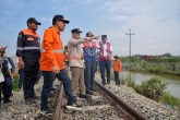 Menteri Perhubungan Dudy Purwagandhi meninjau perbaikan jalur Kereta Api lintas Medan - Binjai usai mengalami ambles atau longsor pasca banjir yang melanda wilayah Sumatera Utara dan sekitarnya (02/12/2025)