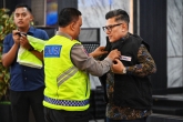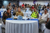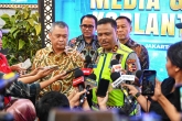 Menteri Perhubungan Dudy Purwagandhi menghadiri Undangan Media Gathering Korlantas Polri di NTMC Polri, Jakarta Jumat (12/12/2025)